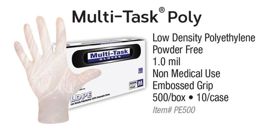 Dash Medical PE500 Multi-Task® Poly Gloves (Case) Palm: 0.4 Mil | Finger: 0.4 Mil, 500/Box, 10 Boxes/Case