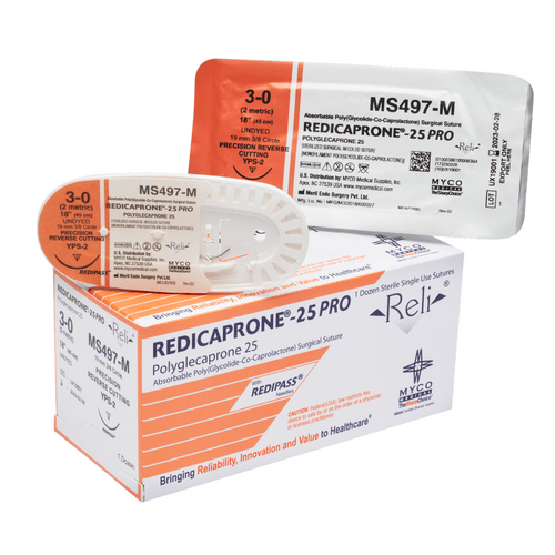 Myco Medical MS497-M - REDICAPRONE® 25 PRO Absorbable Monofilament, PGCL Synthetic Suture, Size 3-0, Length 18", 19 mm 3/8 Circle Precision Reverse Cutting Needle (Undyed) - UOM 12/BX
