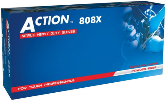 Shamrock 808124 - ACTION 808120 Series Heavy Duty Nitrile, Powder-Free, Examination Blue Gloves, 8 Mil, Xlarge, (10 Boxes of 50)